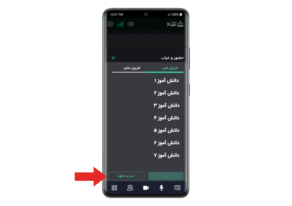 با فشردن دکمه ثبت، فایل حضور و غیاب از طریق بخش مدیریت و در صورت ثبت و دانلود علاوه بر دانلود از بخش مدیریت، فایل در دستگاه شما هم دانلود میشود.