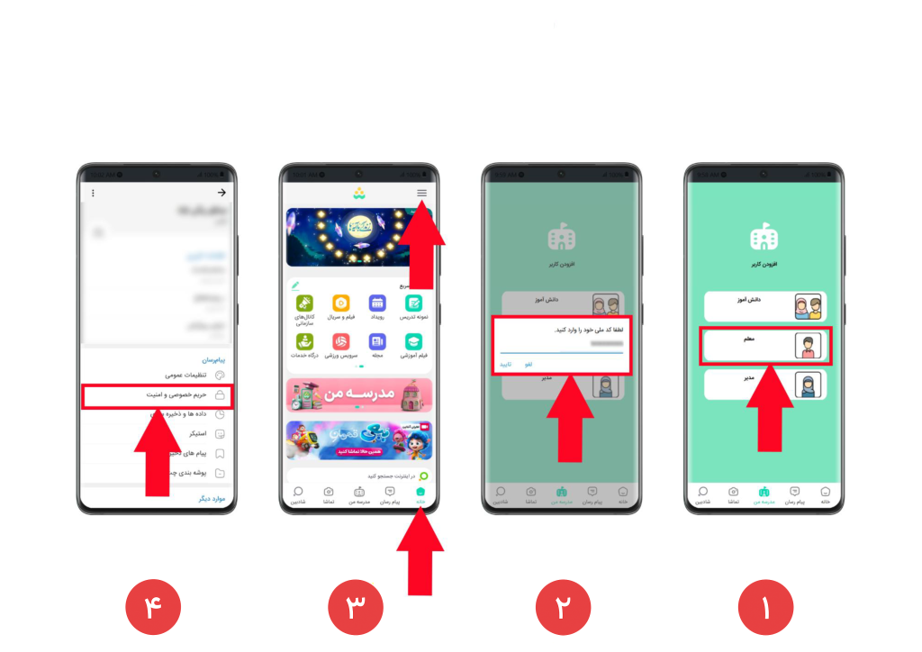 – به بخش مدرسه من بروید و نقش معلم را انتخاب کنید .