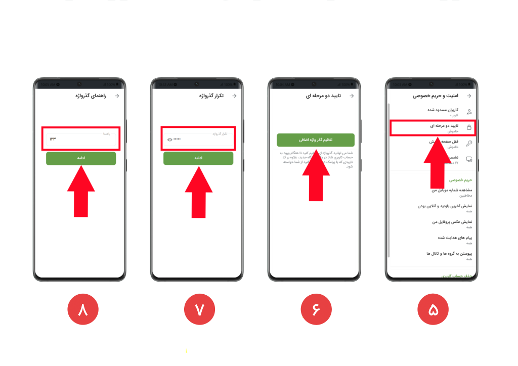 – پس از ورود به بخش «حریم خصوصی و امنیت» گزینه تایید دو مرحلهای را انتخاب نمایید.