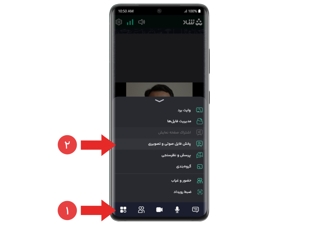 – برای استفاده از این ابزار ابتدا روی گزینه منوی کلاس مجازی ضربه بزنید